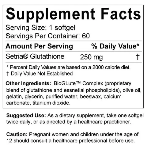 • 250mg reduced glutathione per softgel — higher concentration per serving