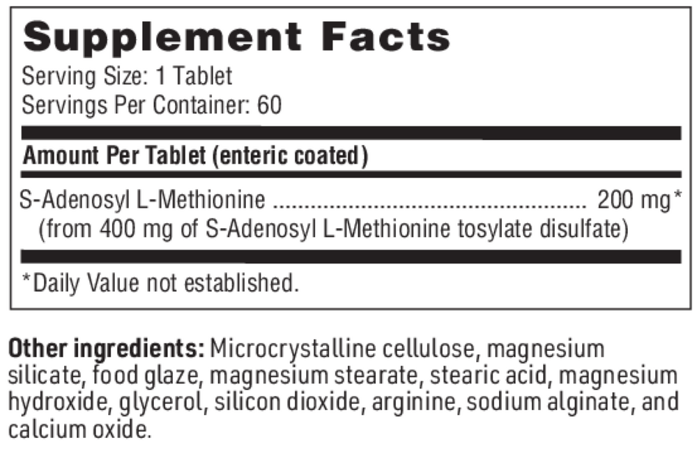 -Supports numerous energy-requiring processes within your body, promoting healthy mood, cognition, and emotional well-being.† In numerous clinical studies, SAMe has also been shown to support bone and joint health, liver detoxification, and healthy cell membranes.†